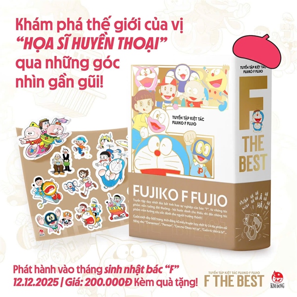 Suốt nhiều thập kỉ, họa sĩ Fujiko F Fujio không chỉ là biểu tượng trong trái tim biết bao thế hệ độc giả, mà còn được tôn vinh như một trong những họa sĩ truyện tranh có tầm ảnh hưởng sâu rộng nhất lịch sử Manga Nhật Bản. Tại Nhật Bản, nhân kỉ niệm 90 năm ngày sinh của bác (1933-2023), ấn phẩm “Tuyển tập kiệt tác Fujiko F Fujio: F THE BEST” đã ra đời như một “Viện bảo tàng” thu nhỏ, lưu giữ trọn vẹn những tinh hoa trong hành trình sáng tạo kì diệu của bác “F”. Ngày 12 tháng 12 năm 2025, nhân tháng sinh nhật Fujiko F Fujio, Nhà Xuất bản Kim Đồng sẽ cho phát hành bản tiếng Việt của tuyển tập đặc biệt này.