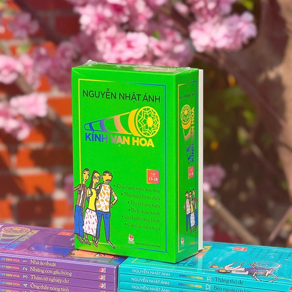 54 tập truyện được đóng thành 9 boxset, mỗi boxset gồm 6 tập. Boxset là hộp cứng, được thiết kế đẹp, bắt mắt, rất thuận lợi để bảo quản và trưng bày sách. Bìa sách 5 màu, chữ và tranh minh họa của họa sĩ Đỗ Hoàng Tường được phủ UV tinh tế, sang trọng. Màu sắc từng tập, từng boxset đều do nhà văn Nguyễn Nhật Ánh lựa chọn để thể hiện đúng tinh thần của Kính Vạn Hoa.