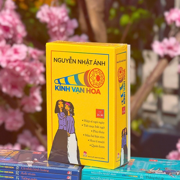 54 tập truyện được đóng thành 9 boxset, mỗi boxset gồm 6 tập. Boxset là hộp cứng, được thiết kế đẹp, bắt mắt, rất thuận lợi để bảo quản và trưng bày sách. Bìa sách 5 màu, chữ và tranh minh họa của họa sĩ Đỗ Hoàng Tường được phủ UV tinh tế, sang trọng. Màu sắc từng tập, từng boxset đều do nhà văn Nguyễn Nhật Ánh lựa chọn để thể hiện đúng tinh thần của Kính Vạn Hoa.