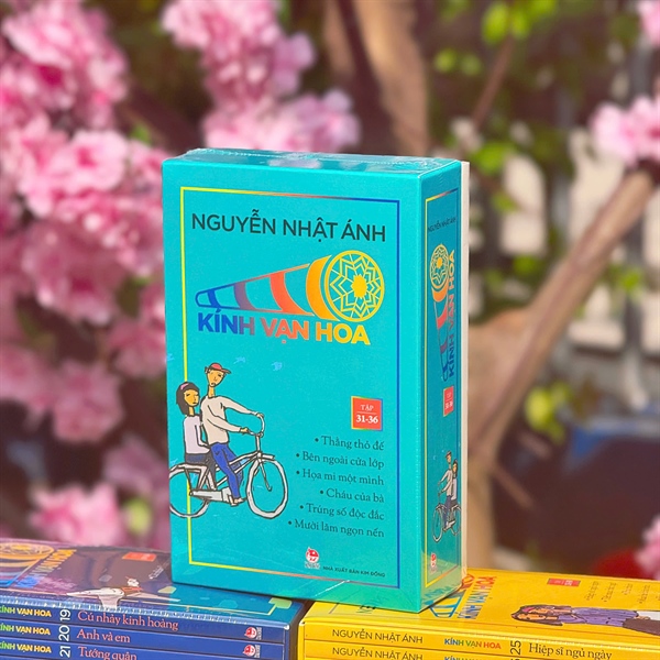 54 tập truyện được đóng thành 9 boxset, mỗi boxset gồm 6 tập. Boxset là hộp cứng, được thiết kế đẹp, bắt mắt, rất thuận lợi để bảo quản và trưng bày sách. Bìa sách 5 màu, chữ và tranh minh họa của họa sĩ Đỗ Hoàng Tường được phủ UV tinh tế, sang trọng. Màu sắc từng tập, từng boxset đều do nhà văn Nguyễn Nhật Ánh lựa chọn để thể hiện đúng tinh thần của Kính Vạn Hoa.