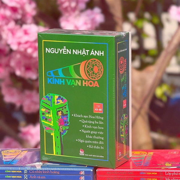 54 tập truyện được đóng thành 9 boxset, mỗi boxset gồm 6 tập. Boxset là hộp cứng, được thiết kế đẹp, bắt mắt, rất thuận lợi để bảo quản và trưng bày sách. Bìa sách 5 màu, chữ và tranh minh họa của họa sĩ Đỗ Hoàng Tường được phủ UV tinh tế, sang trọng. Màu sắc từng tập, từng boxset đều do nhà văn Nguyễn Nhật Ánh lựa chọn để thể hiện đúng tinh thần của Kính Vạn Hoa.
