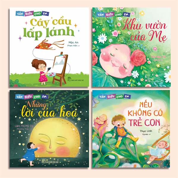 Bộ sách “Vần điệu cho em” gồm 4 quyển, là những tập thơ vô cùng dễ thương về nhiều chủ đề khác nhau nhưng vẫn vô cùng thân thuộc với bạn đọc nhỏ tuổi, từ con người, cây cối, thời tiết đến những hoạt động thường ngày được miêu tả bằng những vần thơ đơn giản dễ đọc, dễ hiểu cùng hình minh họa vô cùng đáng yêu.
